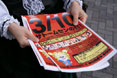 ほか、左から白鳥ひなさん、紀依さん、ゆりさんそれぞれの、「3月10日はサトームセンの日」チラシ配布の様子。