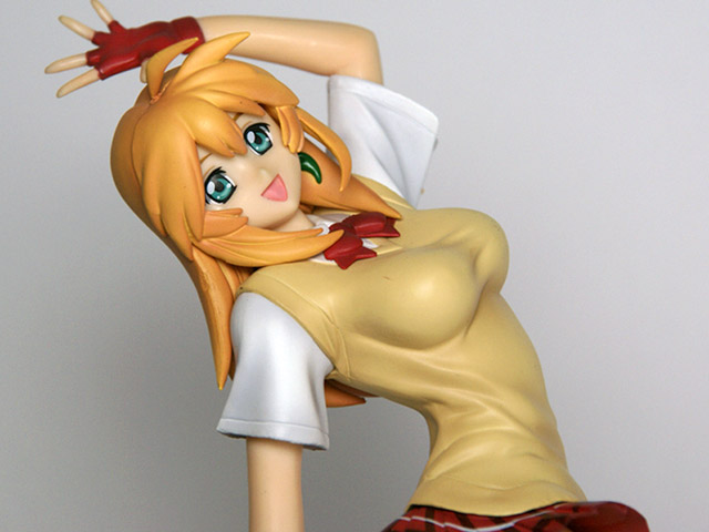 コトブキヤ一騎当千 Dragon Destiny 孫策 伯符」(AA)のサンプルです。ワンフェス2007[冬]の会場で撮らせて頂きました!これは、アニメ「一騎当千」の主人公「孫策伯符」を、制服姿で立体化したもの。グリフォン物だとまず半裸なので、ある意味きちっと服を着ているのが新鮮かも?w 気になるスカートの中ですが、薄ピンクの食い込みぱんちゅでございましたw