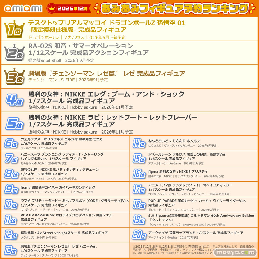 2025年12月あみあみフィギュア月間ランキング