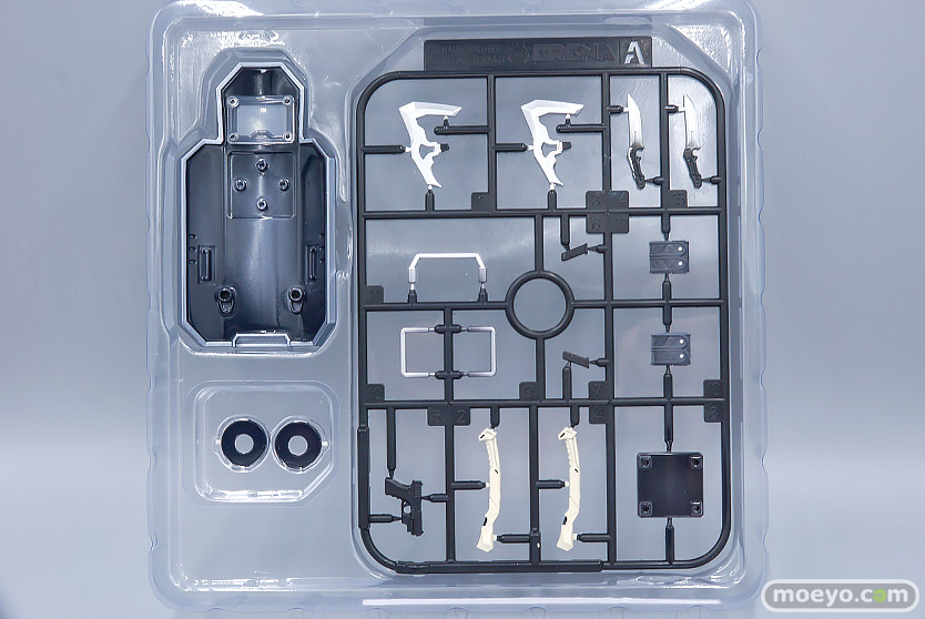 ▲ブリスターパッケージは二層になっていて、下層部には大楯や武器類の塗装済みランナーパーツなどが収納されています。