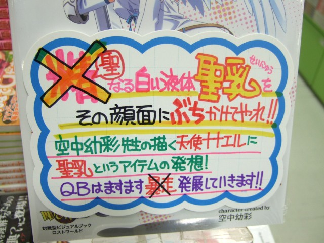 POPには「聖なる白い液聖乳(せいにゅう)をその顔面にぶちかけてやれ!!空中幼彩先生の描く天使ナナエルに聖乳というアイテムの発想!QBはますます暴走発展していきます!!」とかかれ、顔射頭に直撃の画像サンプルが掲示されていましたw(ぶっかけ – Wikipedia)