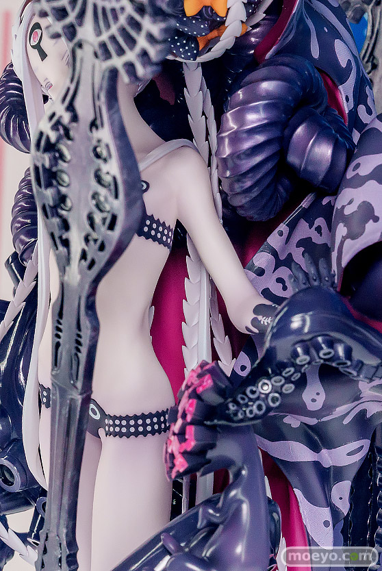 妖しく魅了するような微笑みの表情と、しなやかに伸びる手足がモノトーンの水着と相まって魅力ある仕上がりです。多重構造のお団子頭や二匹の猫(?)もしっかり再現。大きなローブから溢れでる触手やツノ、鍵のようなモチーフの有機的な曲線など、混沌とした世界観を迫力ある造形と、ツヤ感を使い分けた質感を感じさせる塗装表現でまとめ上げました。