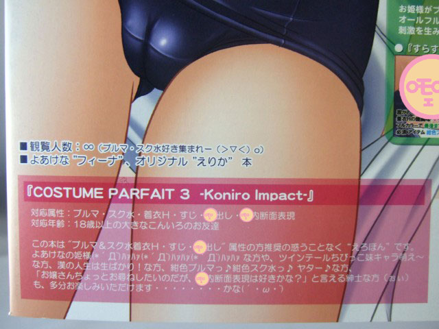 COSTUME PARFAIT 3-Koniro Impact-」の表紙と裏表紙と、それぞれの気になりそうな部分のアップw