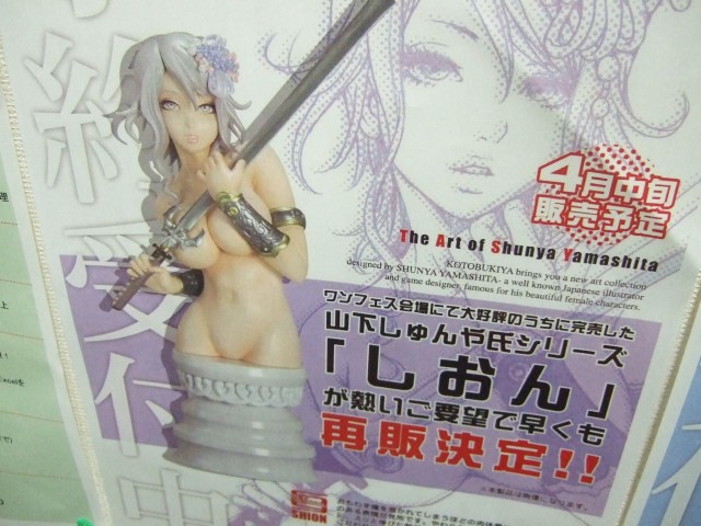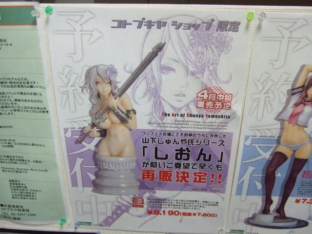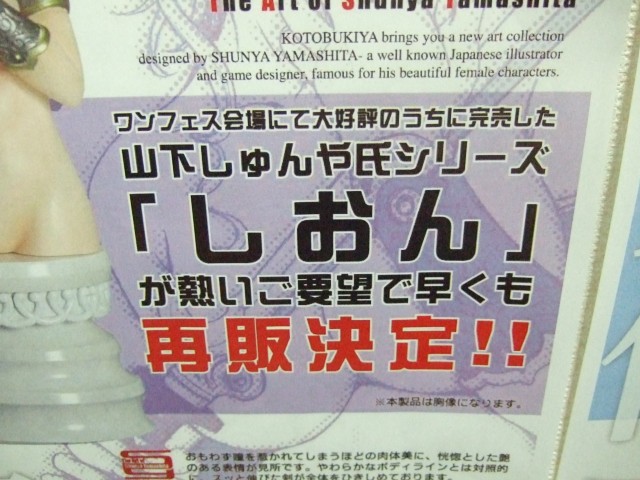 ワンダーフェスティバル2007冬のコトブキヤブースで300個限定販売され、コトブログの記事「お問い合わせ殺到!!!」で「現在、再販を前向きに検討しております。」とされていた、コトブキヤ「山下しゅんや氏シリーズ しおん」(参考レビュー)ですが、3月19日には、コトブキヤラジオ会館、秋葉原店にて再販の告知が掲示され、同時に予約受付も開始しているみたいでした。