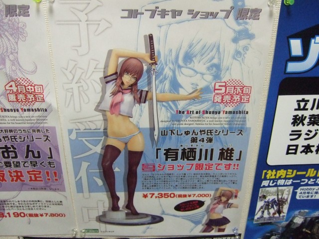 下乳ってレベルじぇねえ乳の、コトブキヤ「有栖川 椎」(RA)(サンプルレビュー)の予約告知POPも統一デザインのものが掲示されていました。こちらもコトブキヤショップ限定品。