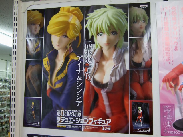 3月20日、バンプレストプライズ「機動戦士ガンダム第08MS小隊 シチュエーションフィギュア」(RA)がハビコロ玩具にて入荷していました。これは、OVA「機動戦士ガンダム 第08MS小隊」に登場するキャラ「アイナ・サハリン」と「シンシア」を立体化したもの。2種ともなぜか衣服の胸元が大きく開かれ、谷間を拝むことが出来る「シチュエーションフィギュア」となっていますw
