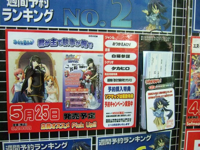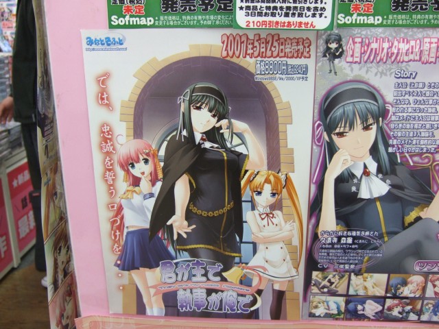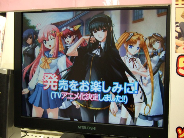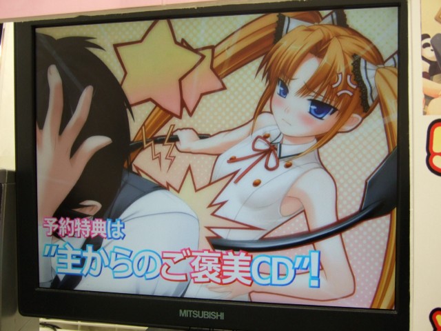 3月20日、公式でも公開が開始している、エロゲ「つよきす」の企画&シナリオを担当されたタカヒロ氏が立ち上げたみなとそふとの第1弾で、すでにアニメ化も決まっている「君が主で執事が俺で」(AA)の「特典通知用おまけデモ」が、ソフマップ本店にて放映開始されてます。