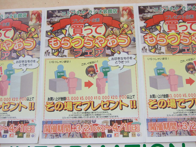 コトブキヤラジオ会館にて、2月21日から「買ってもらっちゃおうフェア」開催の告知が。