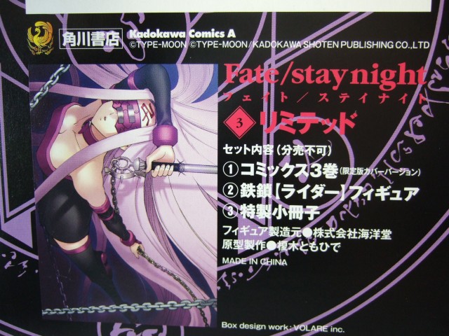 海洋堂製「鉄鎖(ライダー)」付属 「Fate/stay night 第3巻 リミテッド 初回限定版」発売