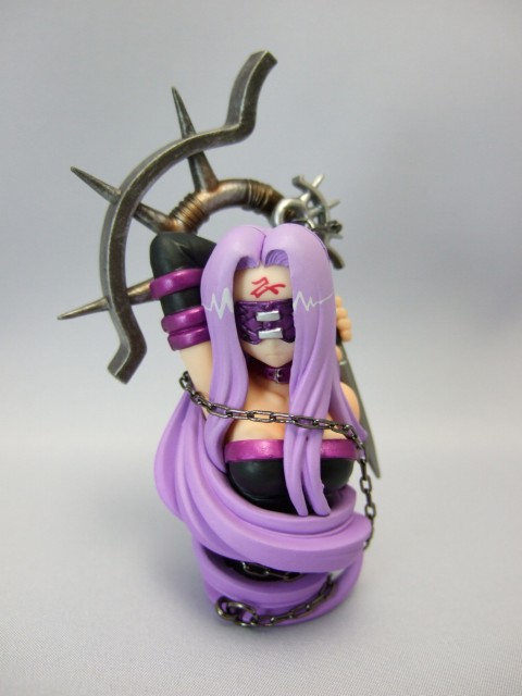 角川の商品4種海洋堂製作の「Fate胸像コレクション4種」が、それぞれ一つずつ付属していく、TYPE-MOON×海洋堂 『FATE』胸像化計画の一つ、「鉄鎖(ライダー)」の全身前後。