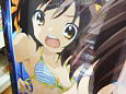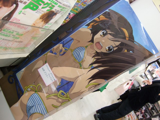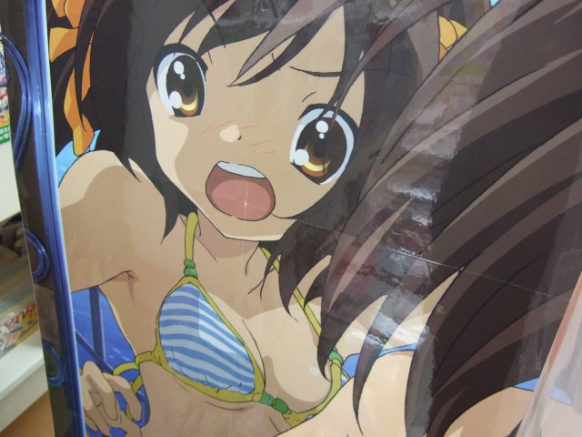 今回は、縞々水着ハルヒ&水着長門の380x1052mmの「ほぼ」等身大リバーシブルポスターが付属していて、ゲーマーズ本店では、ハルヒ面のサンプルを掲示していました。