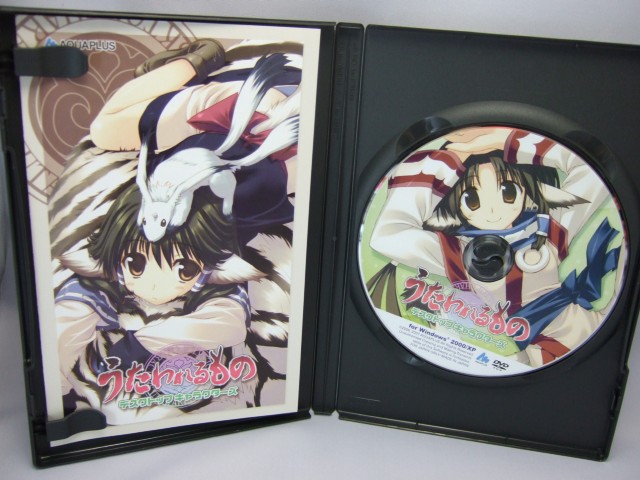 「うたわれるもの デスクトップキャラクターズ 初回限定版」(AA)の中に入っているトールケースのジャケット表裏と中身。