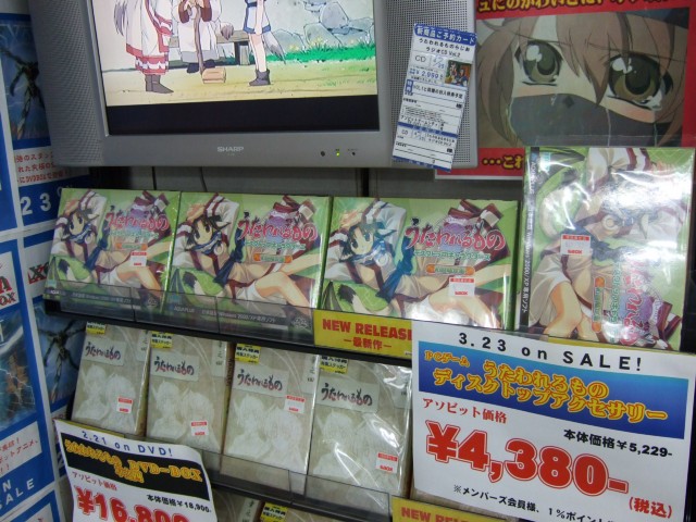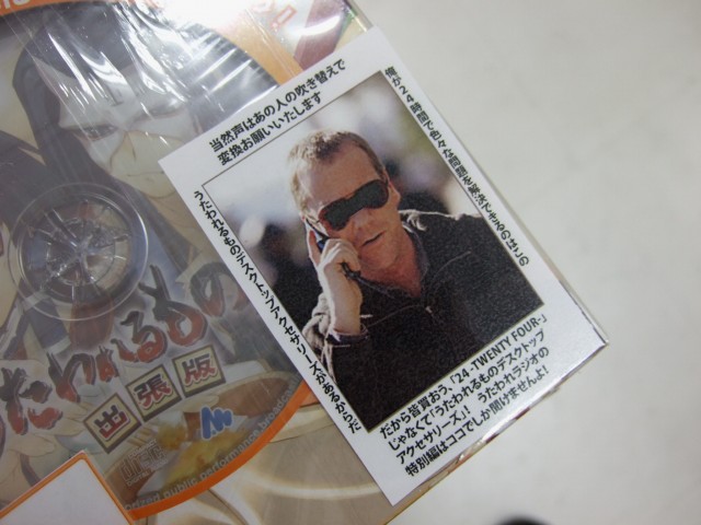 とらのあな本店でも入荷していて、POPには「24-TWENTY FOUR-」なあの方っぽい画像が用いられ「当然声はあの人の吹き替えで変換お願いいたします 俺が24時間で色々な問題を解決できるのはこのうたわれるものデスクトップアクセサリーズがあるからだ だから皆買おう、「24-TWENTY FOUR-」じゃなくて「うたわれるものデスクトップアクセサリーズ」!うたわれラジオの特別編はココでしか聞けませんよ!」とされていましたw