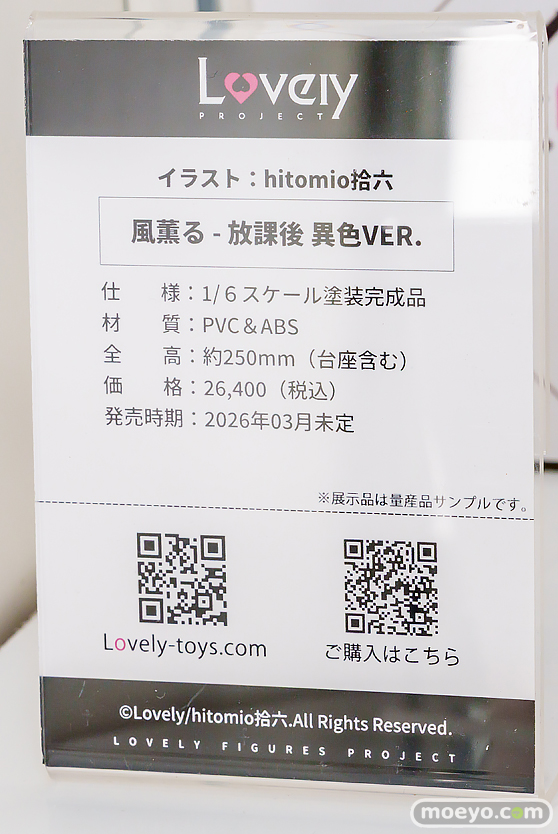 Lovely *掲載の展示アイテムは原則的に監修中や製作中のものとなります。 実際の商品とは若干異なる場合がございますので、予めご了承ください。 撮影:いつもの友人/もんぷち。 文:もんぷち。 関連 ■ワンダーフェスティバル2026 [冬] の記事一覧 ■ワンダーフェスティバル ■Lovely