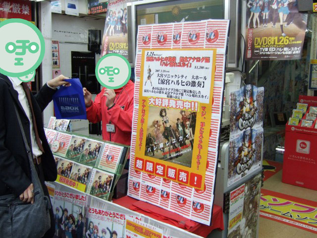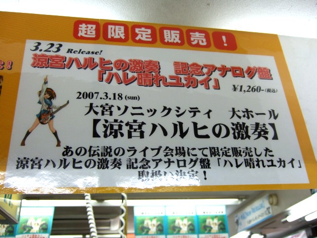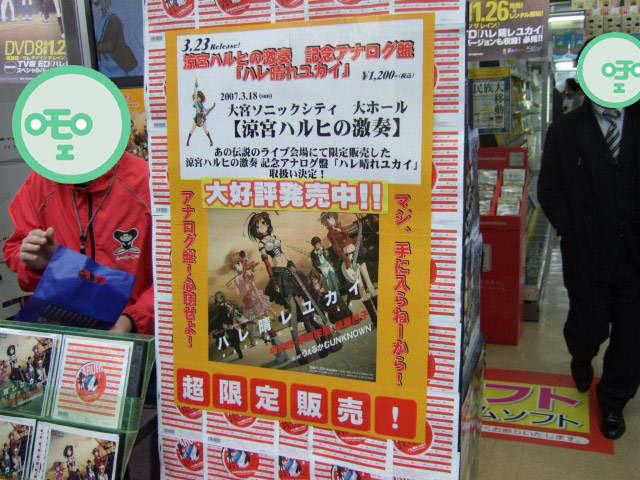 3Fでも展開されていて、「あの伝説のライブ会場にて限定販売した涼宮ハルヒの激奏記念アナログ盤「ハレ晴れユカイ」取扱い決定!」とも。