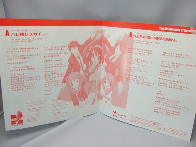 A面はTVアニメ「涼宮ハルヒの憂鬱」ED曲の「ハレ晴レユカイ」で、B面はラジオ「涼宮ハルヒの憂鬱 SOS団ラジオ支部」ED曲の「うぇるかむUNKNOWN」。
