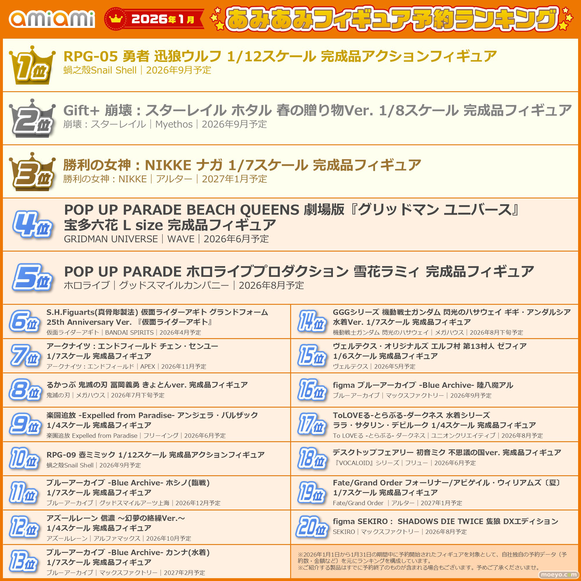2026年1月あみあみフィギュア月間ランキング