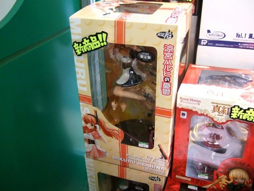 3月26日、アトリエ彩「朝比奈みくる 宮沢模型限定 ブラック ウェイトレスver.」(AA)が発売されました。これは、宮沢模型展示会2007年春等でもサンプル展示されていた、「涼宮ハルヒの憂鬱」のキャラ「朝比奈みくる」を劇中のウエイトレス姿での「ミクルビィ〜ム」ポーズで立体化したものの、宮沢模型流通限定の黒メイド服のカラバリ。通常版(AA)は入荷は見かけませんでした。