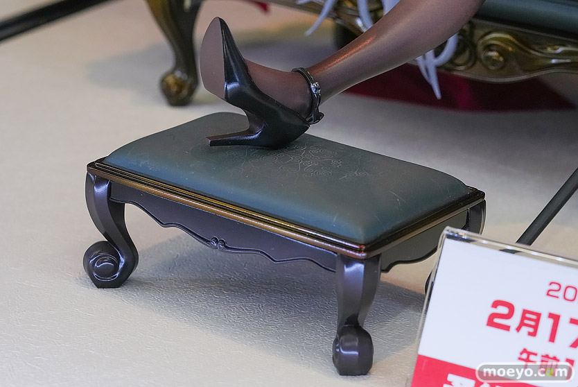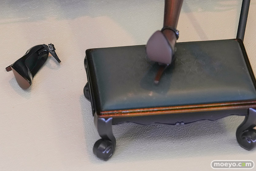 エナメル素材をイメージした艷やかな塗装で質感を引き立てています。柔らかな曲線を描く太ももは、衣装や装飾との境界部分の造形にこだわり、密着感のある薄手のタイツ越しに感じられる肉感を意識して仕上げました。