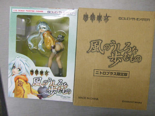 ソリッドシアターの商品説明(縞ぱんVer.)によると『「イグニス」でお馴染みとなったニトロプラス『塵骸魔京』より、もう一人のヒロイン「風のうしろを歩むもの」がPVC完成品で登場です。原型はニトロプラスファンならもうお馴染みの「戸田聡」氏によるもの。本作品の特徴はなんといっても尻!!イベントで人気があったガレージキットにポシェットと太ももまわりの新規造型を加えてのと登場です。ソリッドシアターとグッドスマイルカンパニーの初コラボレーションアイテム。是非お買求め下さい。そしてこちらはニトロプラスダイレクト限定版の【縞パンver.】です。通常版とはパンツの柄が異なるので要チェック!!』と紹介されています。(現在は予約完売)