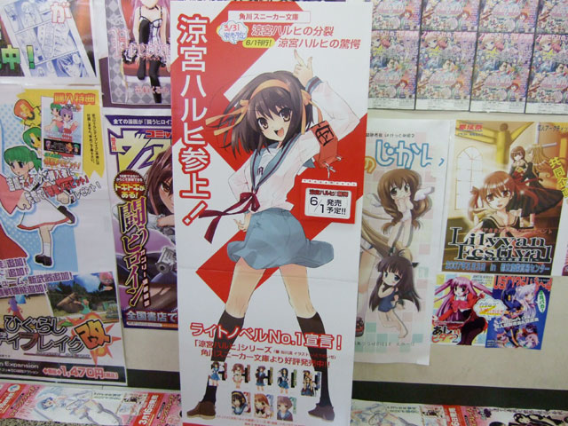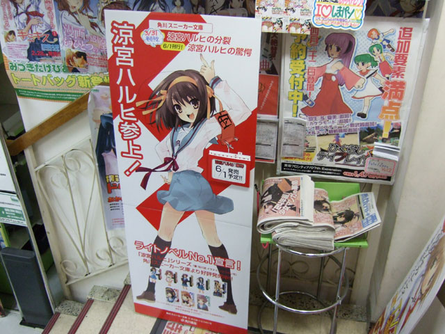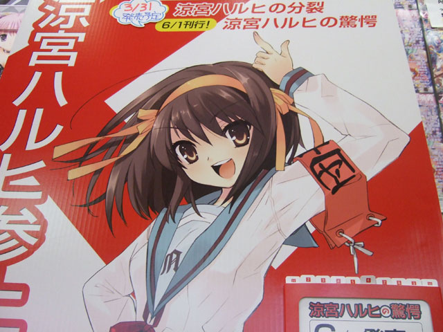 3月27日、メロンブックスにて、3月31日発売予定の角川書店の小説「涼宮ハルヒの分裂」(AA)の宣伝用立て看板が掲示されていました。
