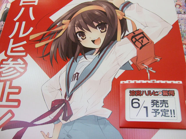 立て看板には6月1日発売予定の小説「涼宮ハルヒの驚愕」の告知もされ、看板で発売日までをカウントダウンできるみたいです。