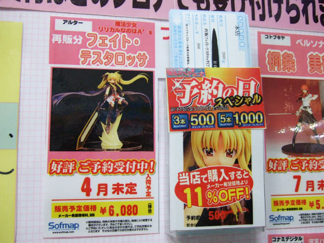 また、ソフマップ本店1Fの予約コーナーでは、アルター 「魔法少女リリカルなのはA’s フェイト・テスタロッサ」(RA)の再販の予約受付も開始していました。