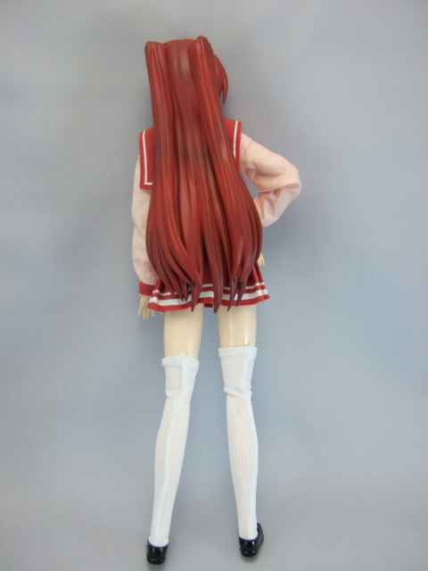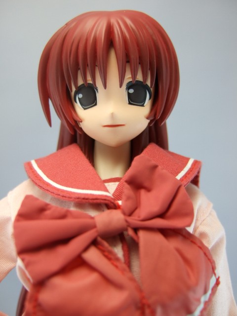 これは、BFC東京2006で初公開され、以前コトブキヤ秋葉原店にてサンプルレビューを撮影させていただいたこともある、オビツ製の新素体に、コトブキヤ製巨乳パーツを用いたという、オリジナル素体のドールシリーズの第1弾で、コトブキヤ公式の商品説明によると「フェイス部分をPVC製で製作することで、高いキャラクターの再現度を実現!! ※後ろ髪は可動と重量を考慮し、今回ソフビ素材を使用しております。素体はオビツ製の水着姿がキュートになる新素体と、コトブキヤ製巨乳パーツのコラボレーション! 制服は巨乳素体に合わせ、立体裁断。抜群のスタイリングを実現しております。」と紹介されています。