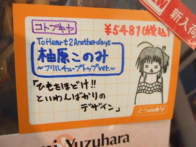 ほか、29日に入荷確認出来たのは、「ひもをほどけ!!といわんばかりのデザイン」というへたれPOPがあった、とらのあな本店、ソフマップ本店、コトブキヤ秋葉原店などでした。