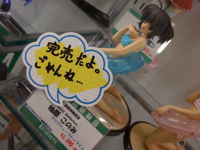 なお、コトブキヤ限定「To Heart2 AnotherDays 柚原このみ アクアチューブトップ Ver.」(参考サンプル)も同時発売でしたが、巡回した午後4時半頃〜7時過ぎには、コトブキヤラジオ会館、コトブキヤ秋葉原店共に完売となっていました。