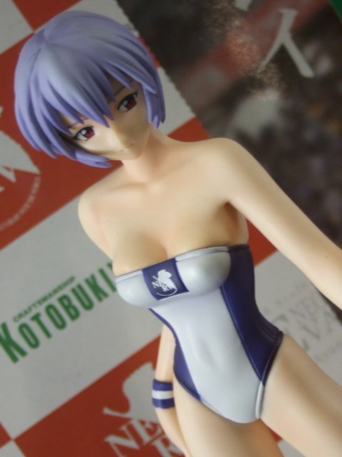 3月29日、コトブキヤ新世紀エヴァンゲリオン 綾波レイ レースクィーンVer.」(AA)が発売されました。これは、ワンフェス2007冬の前日に、サンプルを見せて頂いたこともある、以前発売されていた、「新世紀エヴァンゲリオン」のキャラ「綾波レイ」のレースクィーン姿を立体化したガレージキットを、PVC完成品にしたものです。よーく見ると、うっすらとむねぽち造形もあり?w