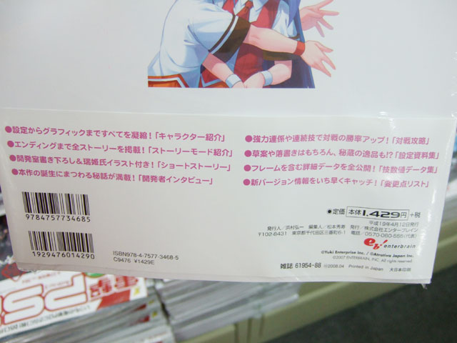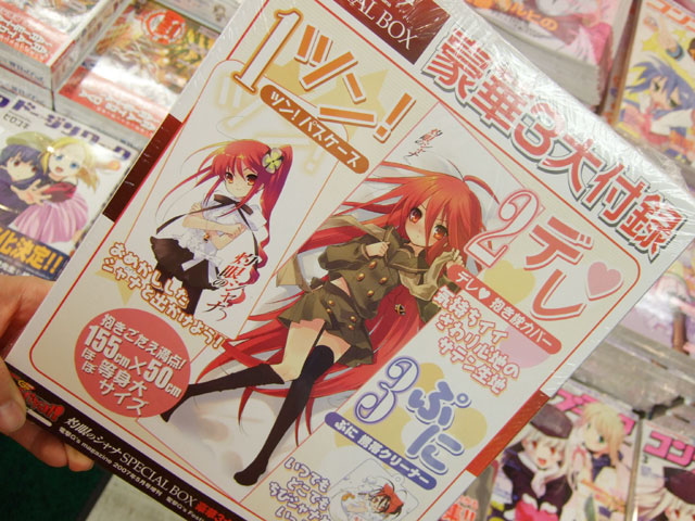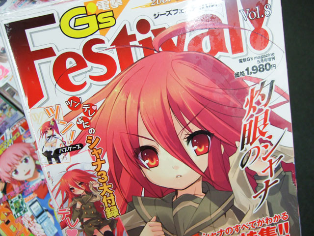 3月29日、角川書店「G’s Festival (ジーズフェスティバル) Vol.8」(AA)が発売されました。これにはシャナの抱き枕が付属していて、ゲーマーズ本店では「ぎゅってやったっていいんだから」として、サンプルを展示していました。他、やまと「Mine bluE#010 妄想…原付と、女の子と、桃源郷」(RA)発売、オーキッドシード「ちちのえ+」(AA)のサンプル展示など、3月29日のよろずネタを。