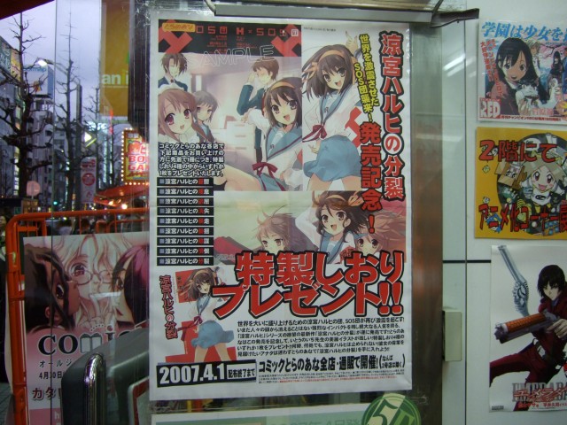 他、31日からの販売を確認出来たのは、キャラシティ4F、先着でしおりプレゼントもあった、とらのあな1号店、「涼宮ハルヒの分裂」の立て看板が2つあるメロンブックス等でした。