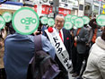 演説後、下に降りられ、カメラや携帯を持った人々に囲まれながら、一人一人と握手をし、記念撮影などにも応じていました。