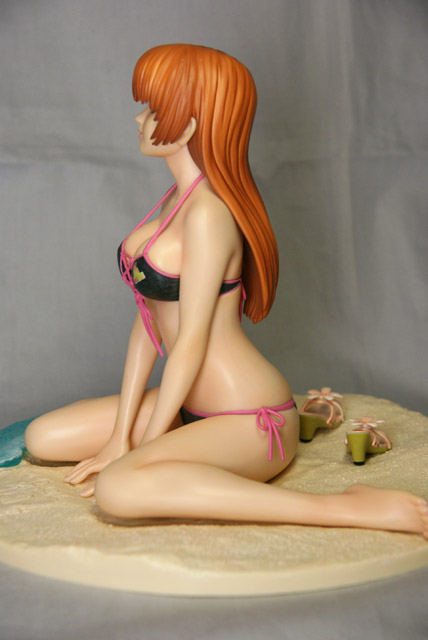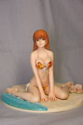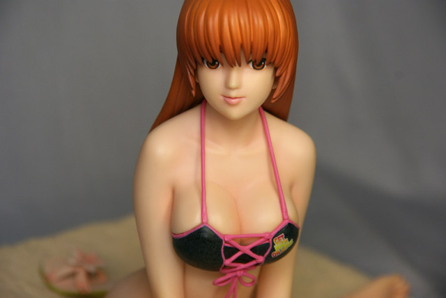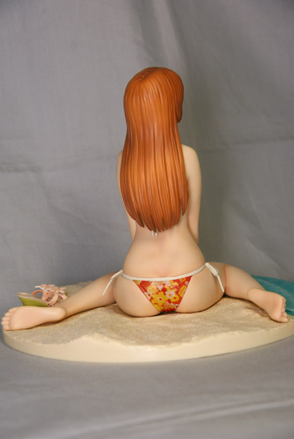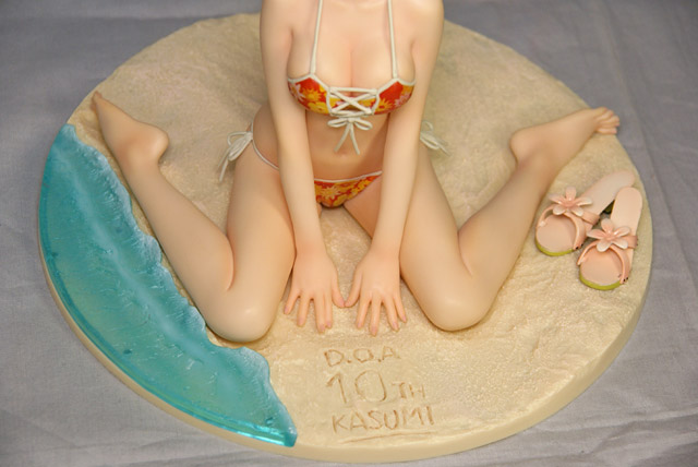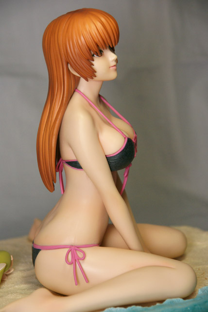 これは、以前、ワンフェス2007冬でもサンプルを撮影させていただいたことのある、DOAシリーズのかすみを、水着姿で立体化したもので、コトブキヤの商品説明によると「3D格闘ゲーム、デッドオアアライブから人気の女性キャラクターが常夏の地で大活躍する期待の新作DEAD OR ALIVE XTREME 2から常に上位に人気のかすみが登場!ゲームのイメージそのままで且つ見所満載な造りこんであるボディが魅力です。」と紹介されています。
