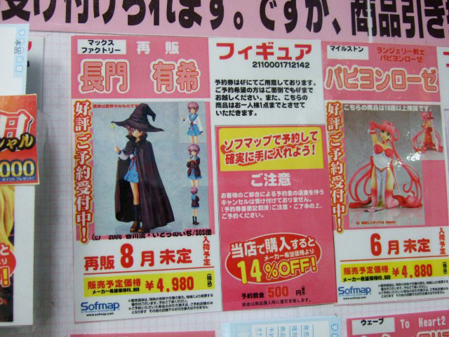 ほか、ソフマップ本店では、マックスファクトリー「涼宮ハルヒの憂鬱 長門有希」の8月再販分の予約がこっそり開始していたり、クイーンズブレイド 立体マウスパッド「光明の天使ナナエル」(AM)と「鋼鉄姫ユーミル」(AM)(価格はともに税込3,980円。)の予約も開始していました。