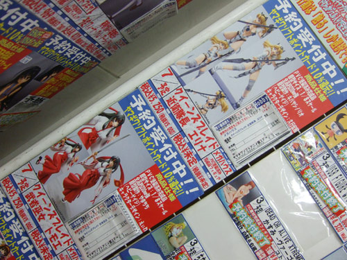 先日ネットでは予約受付が開始されていた、メガハウス エクセレントモデルCORE クイーンズブレイド P-3「武者巫女 トモエ」(AA)と「近衛隊長 エリナ」(AA)ですが、4日には、ヤマギワソフトアニメ館とソフマップ本店でも予約受付が開始していました。今回予約を開始した2店舗は、(完納前提で)一定期間予約受付したのちに発注するみたいなので、予約瞬殺はしないみたいです。