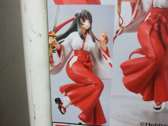 これは、対戦型ビジュアルブック(かどうか最近怪しいですが)のクイーンズブレイドシリーズの一つ「武者巫女 トモエ」(AA)(発売の様子)を立体化したもの。