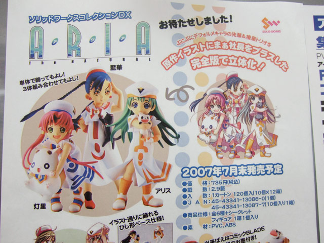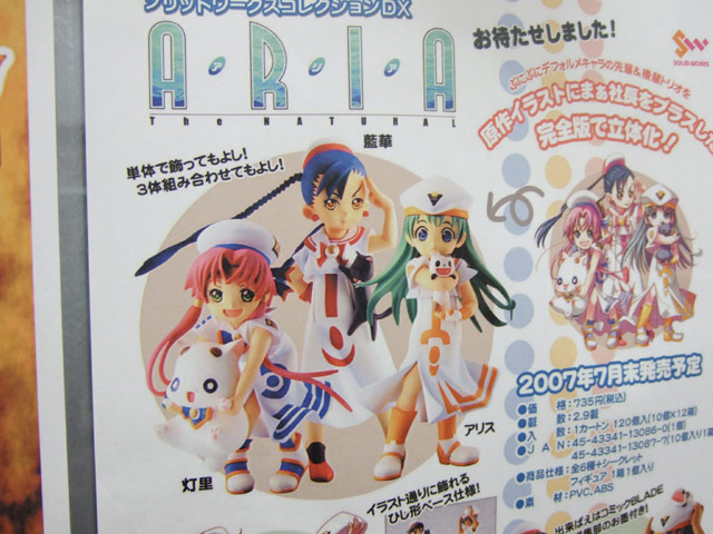 4月4日、とらのあな本店にて、トイズワークスソリッドワークスコレクションDX ARIA アリア」(AM)の予約受付が開始していて、公式POPの掲示も合わせて開始されていました。これは、アニメ「ARIA The NATURAL」のキャラクター達を、POPによると「ぷにぷにディフォルメキャラの先輩&後輩トリオを、原作イラストに「まぁ社長」をプラスした完全版で立体化!」というものです。