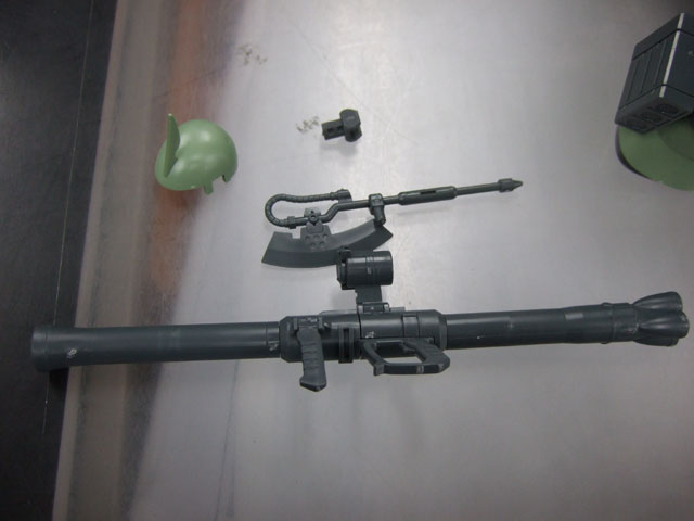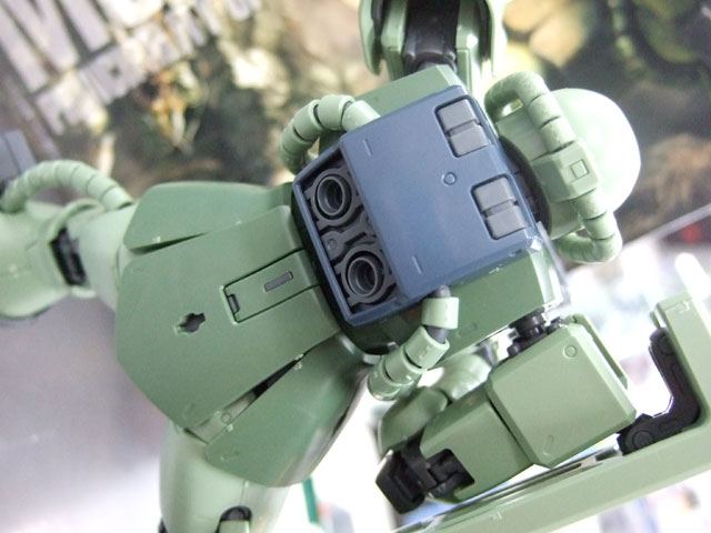 ザク・マシンガン・、ザク・バズーカ、ヒート・ホーク、脚部3連装ミサイルポッドなど代表的な地上装備が付属。