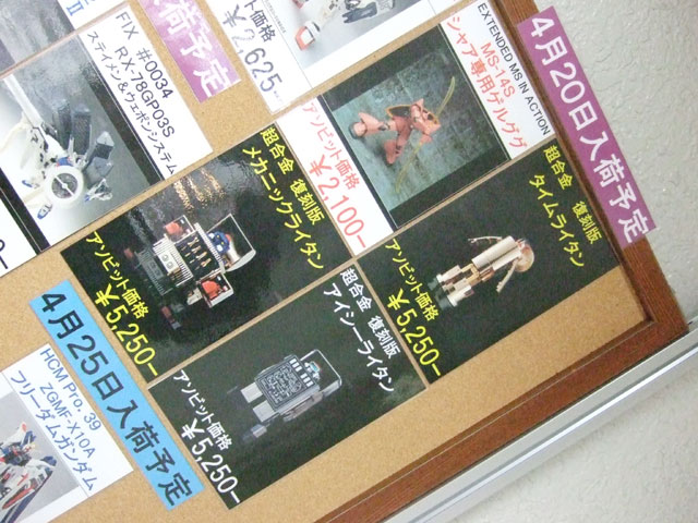 3月31日に移転オープンしたキャラシティ2Fにて、以前と変わらずバンダイ関係+αの入荷予定一覧表が掲示開始していました。