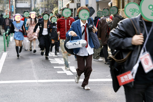 というわけで、まずは 、「全員陣形の並び順のままでホコ天に全力疾走 すぐさまダンス」秋葉原の街中を駆ける「驚異的人数でハレ晴レユカイを踊るOFF」メンバー。