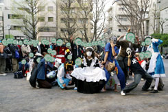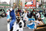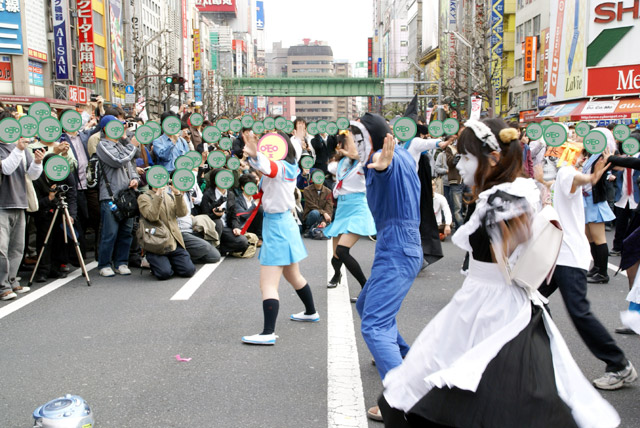 以前秋葉原blogさんでお伝えされていた「驚異的人数でハレ晴レユカイを踊るOFF」が4月8日にもアキバにて行われていました。今回は秋葉原駅前広場ではなく、「全員陣形の並び順のままでホコ天に全力疾走 すぐさまダンス」として、中央通のほうで行われていました。(全力疾走風景) 今回は、毎度おなじみ友人Iが詳しく密着してくれていたので、本文のほうは任せましたw