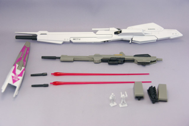 「MG Zガンダム ver.2.0」(AM)と同じ装備品が付属しているほか、1/100スケールのパイロット ホワイトユニコ−ンのフィギュアが付属。