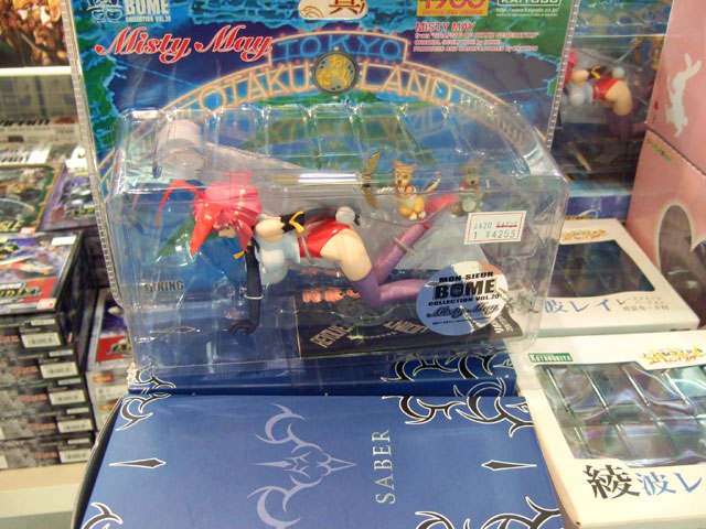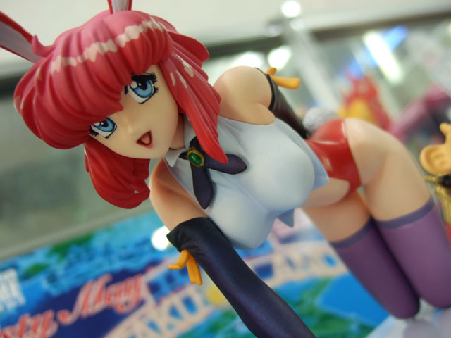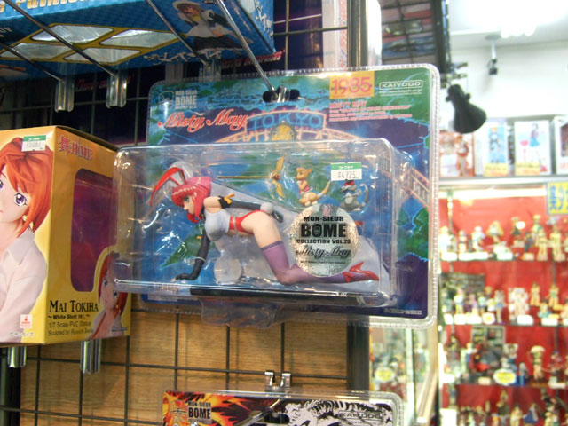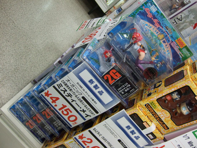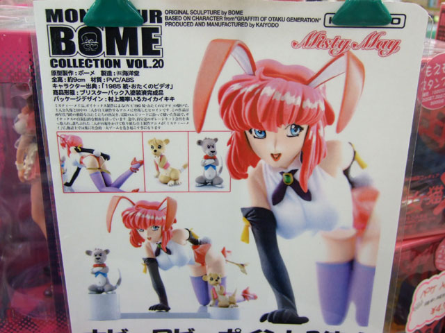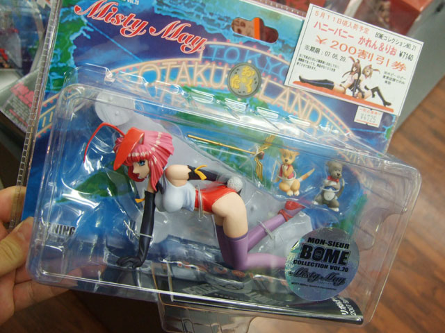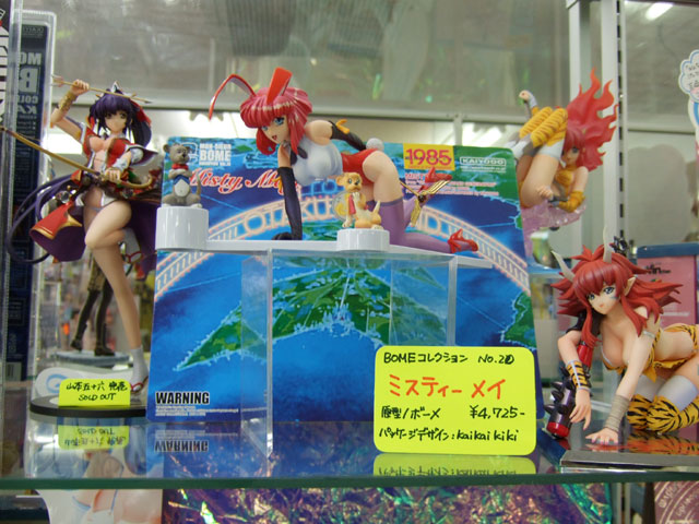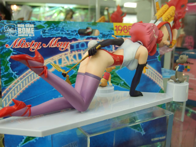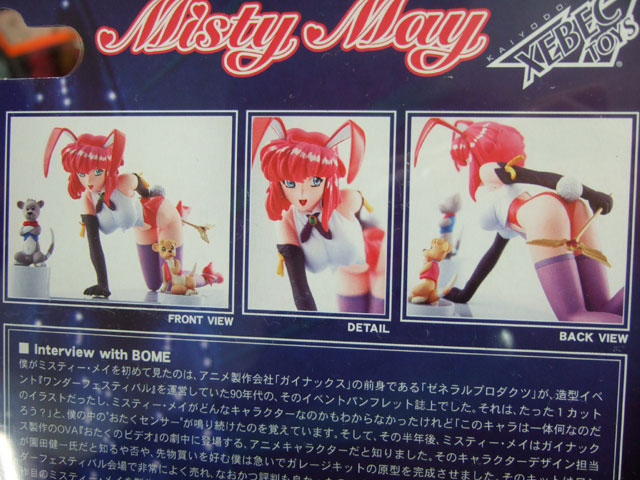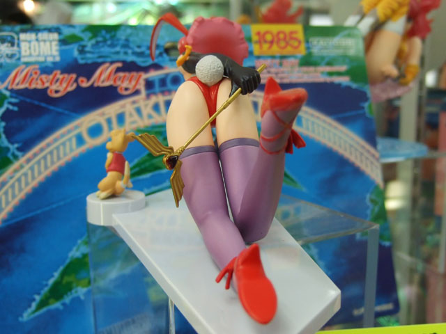掲示されていたPOPによると「ミスティー・メイはガイナックス製作によるOVA「1985続・おたくのビデオ」の劇中で、主人公久保と田中の二人が自主制作するアニメに登場したヒロインです。この作品は80年代当時の独特なおたくたちの熱気を、実際のエピソードに沿って描いた作品で、ガイナックスの自叙伝的な側面を持っています。途中、自分達のガレージキット会社を乗っ取られ、落ちぶれた二人が再起をかけて取り組む自主制作アニメが「ミスティー・メイ」で物語上では後に社会的一大ブームを巻き起こす事になります。」と紹介されています。