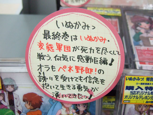 また、ゲームシティのPOPでは「最終巻はいぬかみ・変態軍団が死力を尽くして戦う、何気に感動巨編!オラもペ*野郎!の謗(そし)いを受けても信念を抱いて生きる勇気が湧いてきたっ!」とされていますw