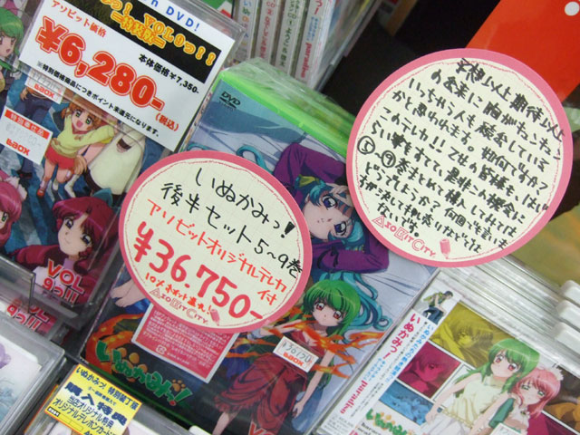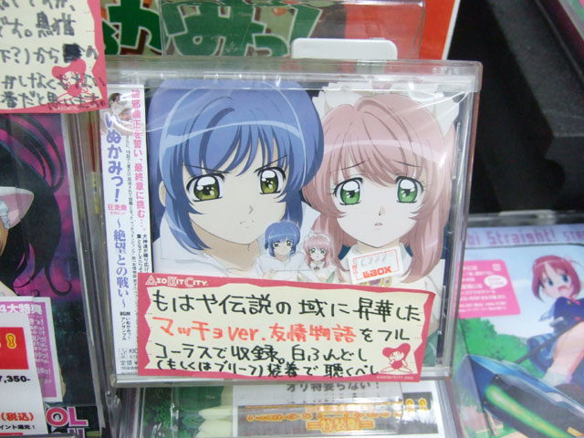 ほか、ゲームシティではPOPに「如何ですか?このテレカ!!乙女の皆様も、はじらい等すてて、是非この機会に�D〜�H巻まとめて購入してみてはどうでしょうか?何回でも言いますが決して押し売りなどではないです。」として、まとめた購入をオススメしていたほか、「もはや伝説の域に昇華したマッチョver.友情物語をフルコーラスで収録。白ふんどし(もしくはブリーフ)装着で聴くべし」として、「いぬかみっ!狂走曲 そのにっ!〜絶望との戦い〜」(AA)(価格は税込3,000円)なども一緒に置かれていました。