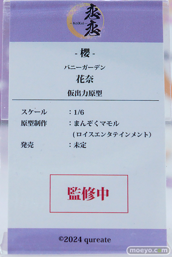 恋恋「バニーガーデン 花奈」(監修中仮出力原型) *掲載の展示アイテムは原則的に監修中や製作中のものとなります。 実際の商品とは若干異なる場合がございますので、予めご了承ください。 撮影:いつもの友人/もんぷち。 文:もんぷち。 関連 ■ワンダーフェスティバル2026 [冬] の記事一覧 ■ワンダーフェスティバル ■恋恋 ©2024 qureate