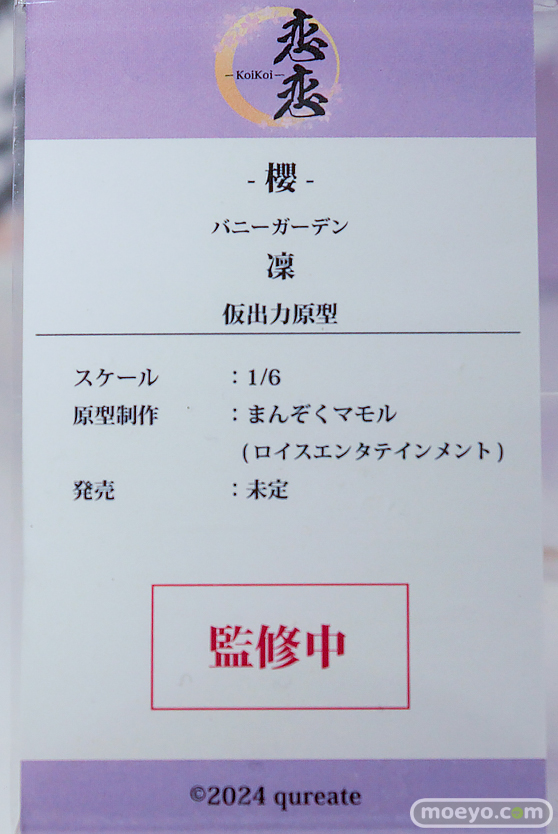 恋恋「バニーガーデン 凛」(監修中仮出力原型) *掲載の展示アイテムは原則的に監修中や製作中のものとなります。 実際の商品とは若干異なる場合がございますので、予めご了承ください。 撮影:いつもの友人/もんぷち。 文:もんぷち。 関連 ■ワンダーフェスティバル2026 [冬] の記事一覧 ■ワンダーフェスティバル ■恋恋 ©2024 qureate