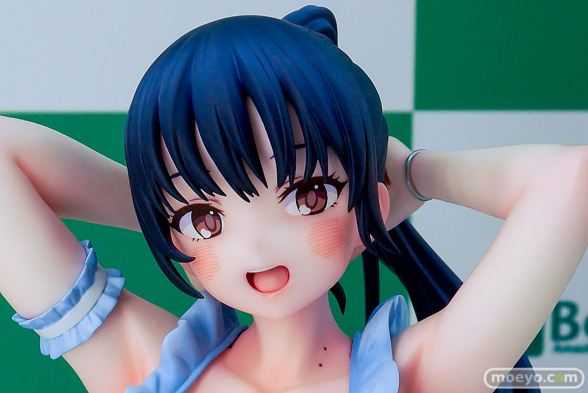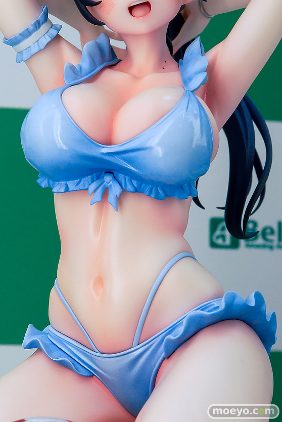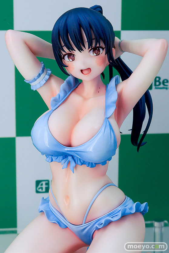 フリルをあしらった鮮やかな艶感のあるパステルブルーの水着が、ビーチではしゃぐ彼女の健康的な美しさを引き立てます。透明感のあるビーチボール、波打ち際を再現した台座など、細部まで質感を追及しました。